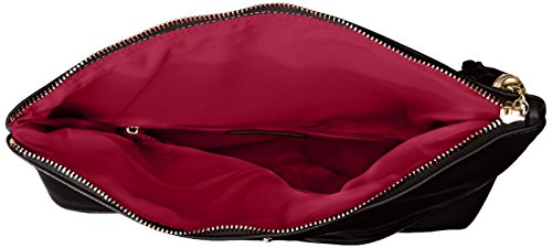 Portfolio-style clutch in faux leather with asymmetric fold-over flap and tasseled zipper pull