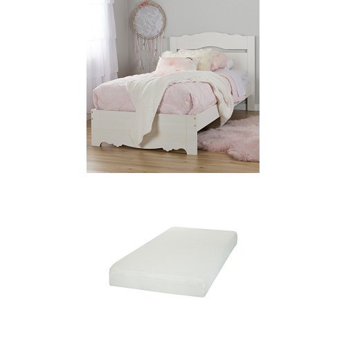 (South Shore)/Kids' Furniture Room Decor/Bed Frames, Headboards Footboards/DIRECT FROM USA/South Shore Lily Rose Twin Bed Set (39'), White Wash, and Somea Twin Mattress included