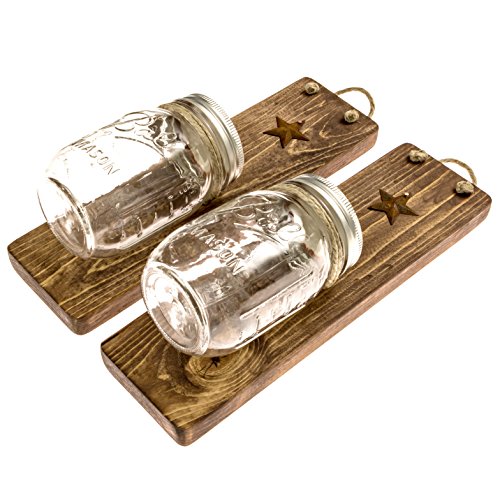 -. Feature : *These Handcrafted Sconces with star accent come in your choice of color: Provincial stain has a lighter driftwood style color great for the Beach House Shabby Chic look, and really allows the natural patterns in the pinewood to show through. Jacobean gives the sense of colonial era cabin and would make great P.R.Imitive style lighting. Honey gives the feel of an old barn in the countryside weathered & distressed with a slight red hint. / *UNIQUE GIFT IDEA & GREAT DECORATION FOR ANY SPECIAL OCCASION! Are you looking for the ideal gift for the newly engaged couples', housewarming party, an anniversary, or birthday present? Everyone loves Mason Jar Decor! These would also look great as rustic party decorations for a wedding or bridal shower! They make a great flatware caddy for parties, and are the perfect accent when filled with fresh flowers! / *MULTI-FUNCTION WOODEN SCONCES VERSATILE DECORATION IN ANY ROOM OF THE HOUSE! Accent walls with the perfect look from farmhouse to boho. These sconces would look lovely on each side of a fireplace in a cozy den or living room. In the bathroom they are perfect as a his and her toothbrush holder, or as an organizer beside of the vanity make great storage for beauty supplies such as q tips and brushes. Use them as an organizer in the kitchen for utensils, or as planters for an indoor herb garden. / *UNIQUE LIGHTING! These sconces are gorgeous filled with sand & a votive candle. They also make romantic wedding decorations for the barn style wedding when used as lanterns with tealights. Give your hallway that rustic feel when you use the set as light fixtures in the entryway. Sconces are easy to hang and heavy duty with 170lb test natural rope! / *HANDCRAFTED & MADE BY ARTISANS IN THE USA SATISFACTION GUARANTEED! Our wall sconces are NOT made with pallet wood or treated wood. So no toxic chemicals to worry about! At Heartful Home our customers are #1. If you are in any way unhappy with our product we offer a full money back guarantee. Due to the handcrafted nature of our products no two will be exactly the same. Please expect a degree of variation.