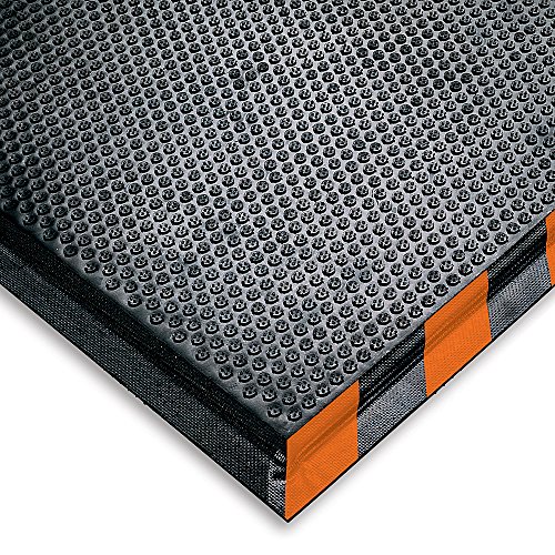 Andersen 476 Happy Feet Nitrile Rubber Grip Surface Anti-Fatigue Interior Floor Mat with Striped Orange Border, 3' Length x 2' Width, 1/2" Thick, Orange Border