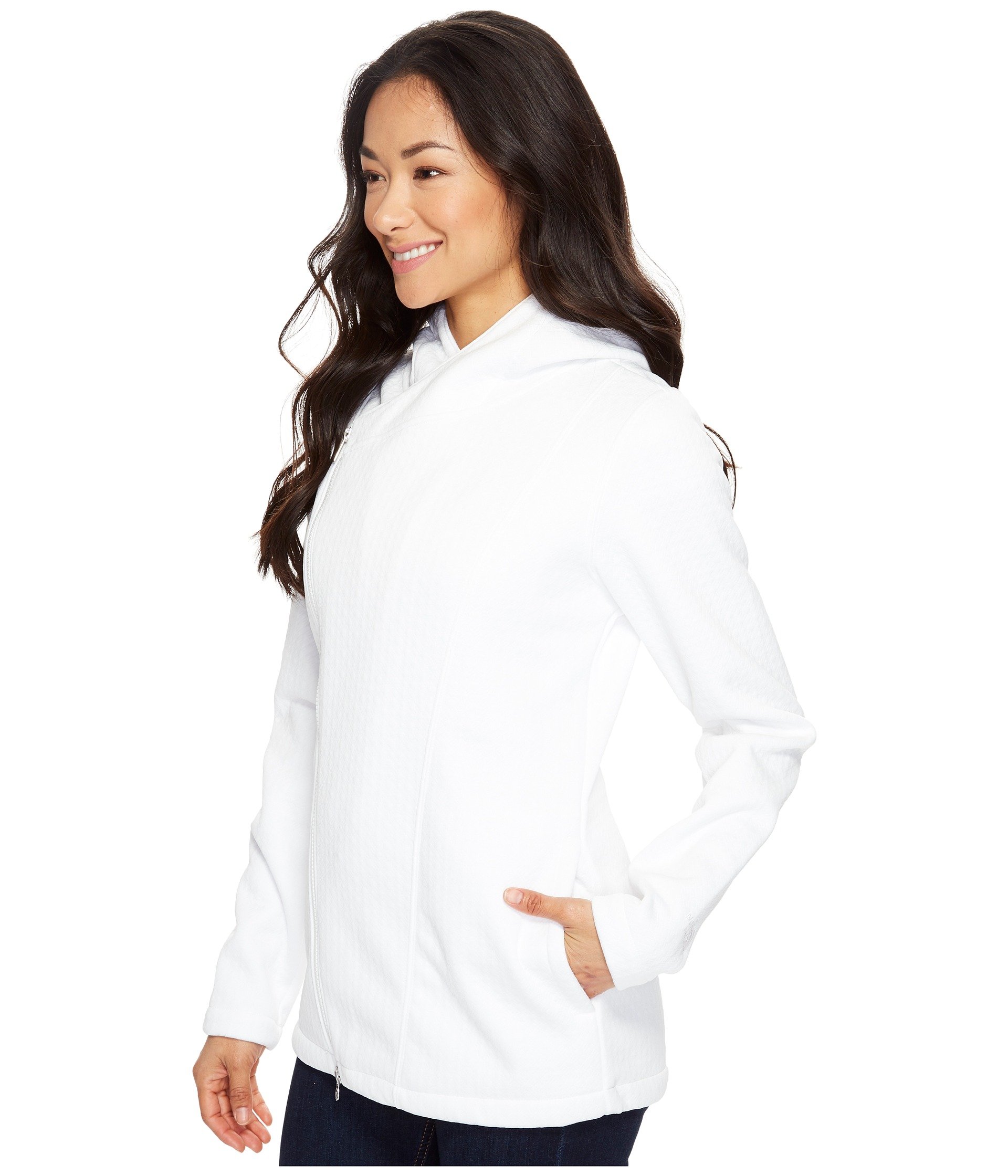 | Product Information SKU: #8801230Please note that this style is either discontinued and/or from a previous season.From around-town layering to your kicked-back look, the Kelana Wrap brings some easy style to your cool-weather wear.Full-zip hoodie in a slightly oversized, wrap silhouette.Bonded fleece: ? Bonded fleece places an inner fleece face against an outer panel. ? Outer face in an embossed design for a subtly textured pattern. ? Inner fleece face is brushed, increasing surface area to improve warmth retention.Attached three-piece hood.Asymmetrical zip closure.On-seam hand pockets.Extended hemline.Logo embroidery at the back shoulder.100% polyester.Machine wash and tumble dry.Imported.Product measurements were taken using size XS. Please note that measurements may vary by size.Measurements: Length: 27 in |