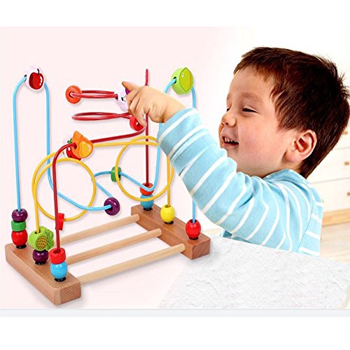 -. Title : Merryshop Wooden Bead Maze Roller Coaster in Multi-color Developmental Colorful Educational Activity Toy for Toddler baby