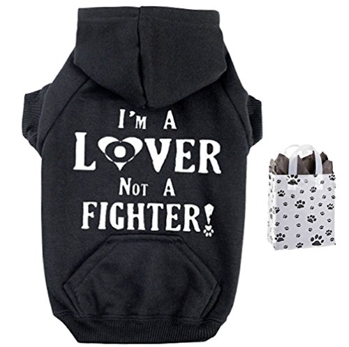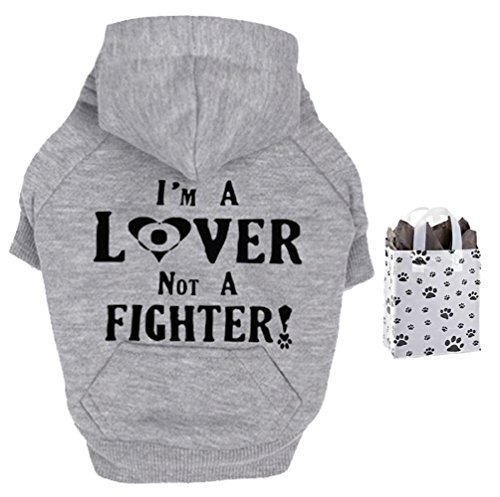 Your dog can make a statement wearing his/her lover not a fighter dog hoodie. These are some estimates to help as well, based on an average American Pit Bull Terrier / American Staffordshire Terrier dog. Large: 40 - 55 lbs. X-Large: 60 - 70 lbs. XX-Large: 75 - 100 lbs. Imported - Printed in USA