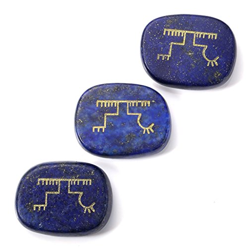 - Dyed Lapis Lazuli Egraved Gapaldur Symbol Oval Palm Stone Ornament
