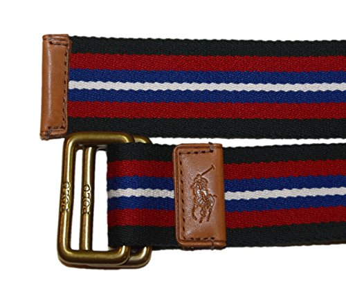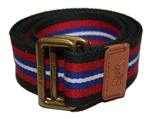 Polo Ralph Lauren Mens Cotton Woven Ribbon Belt Green Blue Red Brass Gold Medium