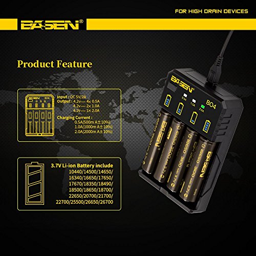 - The product applies to IMR/Li-ion: 10440 14500 14650 16340 16650 17650 17670 18350 18490 18500 18650 18700 22650 20700 21700 22700 25500 26650 26700.