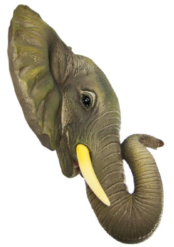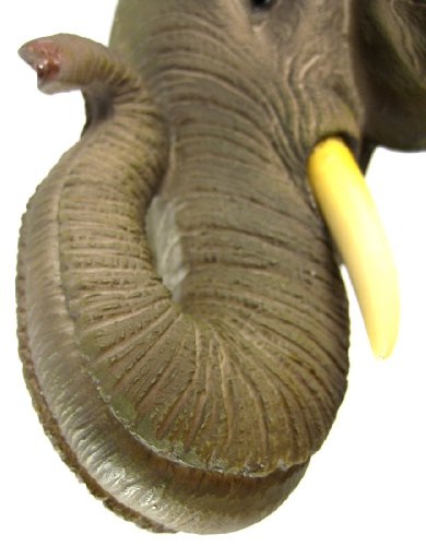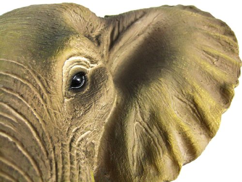 This awesome, cold cast resin replica African Elephant head mini wall mount is a perfect addition to any jungle themed room. The head measures 9 inches tall, 9 3/4 inches wide and 4 1/2 inches deep. The detail is incredible, from the wrinkles in his trunk to his hand painted eyes.