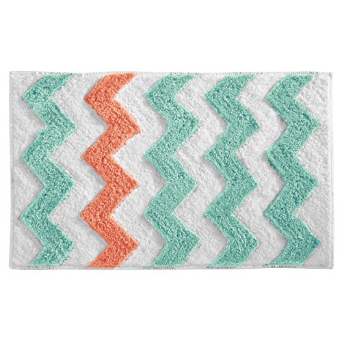 mDesign Soft Microfiber Non-Slip Bathroom Mat/Rug for Bathroom, Vanity, Bathtub/Shower, Dorm Room - 34" x 21", Aruba/Coral