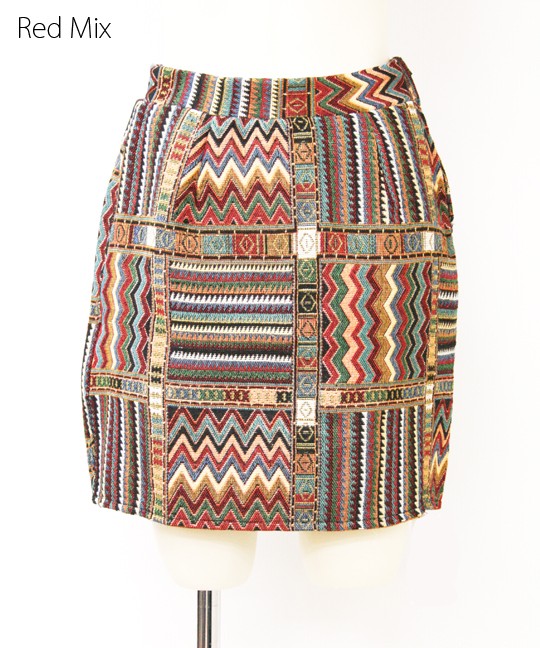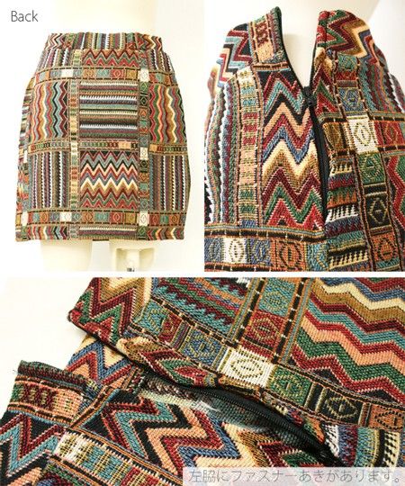 様々な色の混ざったジャガード織の美しいミニスカートです。タイトなシルエットなので女性らしいシルエットになります。横のファスナーで着脱も簡単です!冬らしい柄のスカートはニットとの相性ぴったり。 ◆モデル 身長165cm