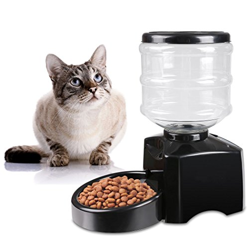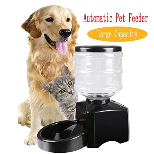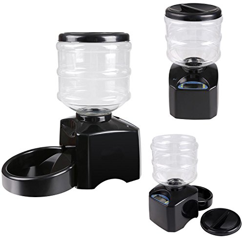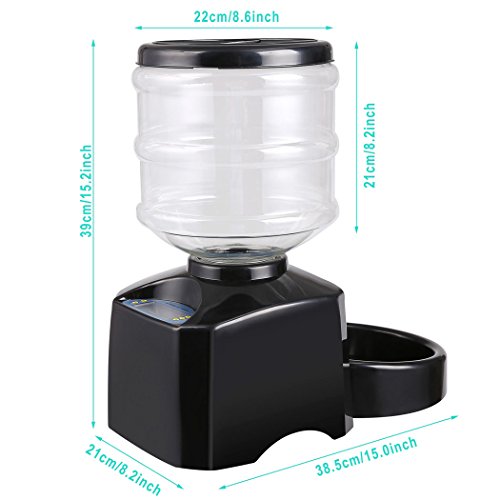 Specification: Material: ABS Color: Black Item: Pet Feeder Design: Automatic Electric Power: Battery Powered By: 3 x D-size Batteries (Not Included). Capacity: 5.5 liters (Dry Food) Meal Size: 1-12 Cups (A cup equals 25ml) Whole Size: approx. L38.5 x W21 x H39cm Package Size: 40.5 x 22 x 25cm Quantity: 1pcs Suit for: Dog, Cat