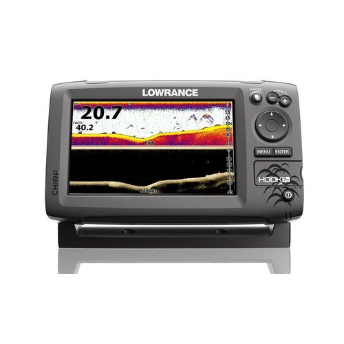 Studio : Pro-Motion Distributing - Direct Publisher : Pro-Motion Distributing - Direct Binding : Sports Product Description Lowrance Hook-7x Mid/High DownScan features a high resolution widescreen display, superior target separation, Trackback, CHIRP sonar and DownScan imaging that are all driven by a simple easy, to use interface. The benefits of CHIRP sonar and DownScan imaging technology gives you a clear and complete view of the underwater environment beneath your boat. Features a 7-inch brilliant color display, the Hook-7x is powered by high performance sonar with enhanced sonar sensitivity, excellent target separation and superior noise rejection, making it easier to see baitfish and gamefish targets. 0