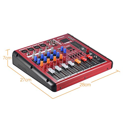 Specifications: Brand: ammoon Channels: 4 Material: Metal Plastic Power adapter: US Plug Input: 100-240V AC 50/60Hz 0.23A Output: ±15V DC ?????????? ?48V DC ? Item size: 28 * 27 * 7cm / 11 * 10.6 * 2.8in Item weight: 2kg / 4.4lb Package size: 34 * 33.5 * 14.5cm / 13.4 * 13.2 * 5.7in Package weight: 2.8kg / 6.2lb