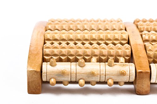 ❤ QUALITY MATERIALS AND CONSTRUCTION. The foot massager is made from theaceae wood and has a non-slip base. The spiky massage ball is PVC rubber formulated to just the right level of firmness.
