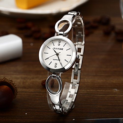-. Feature : UNIQUE DESIGN:round shape watch featuring white dial, analog display, combine fashion and casual style, along with rhinestone hour marks. / HIGH COST-EFFECTIVE: precise Japanese quartz movement for accurate time keeping, quality materials detail of the watch, packed with exquisite package, two-year battery life. / NOT EASY TO FADE: gold-plating in whole with quality materials, offered unfading details of the watch which suitable for every occasion with modern women in mind. / WATER RESISTANT TO 30 M: In general, these watches will withstand small splashes of water but should not be worn while washing the hands or submerging the hands in water. / LUXURY LOOKING STYLE: gold case with High hardness Sapphire glass , effortlessly luxury looking.