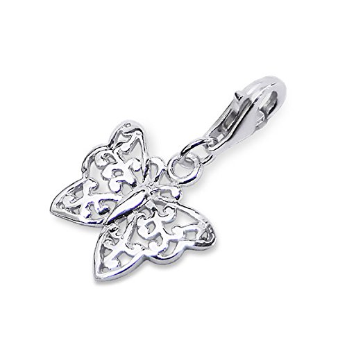 -. Title : Pro Jewelry .925 Sterling Silver Dangling "Decorative Butterfly" Clip-on Charm 1214