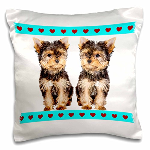 3dRose Tea cup yorkies friends - Pillow Case, 16 by 16-inch (pc_212052_1)