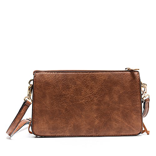 -. Title : Triple Compartments Double Layer Faux Suede Fringe Clutch Crossbody Bag With Wristlet
