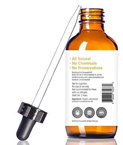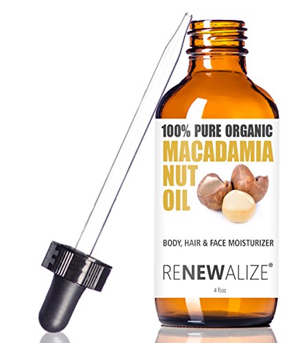 Renewalize Organic Macadamia Nut Oil by In Large 4oz Glass Bottle | Cold Pressed and Unrefined Deep Conditioning Natural Hot Oil Hair Treatment for Controlling Frizz | Dry Skin Body Moisturizer