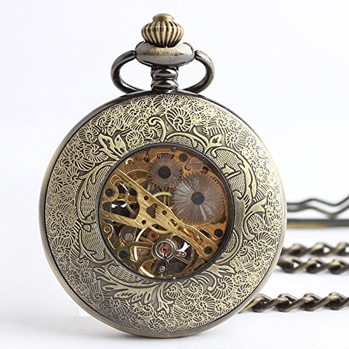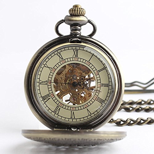 -. Title : TODDCAHALAN Skeleton Pocket Watch Mechanical Movement Hand Wind half Hunter Engraved F037