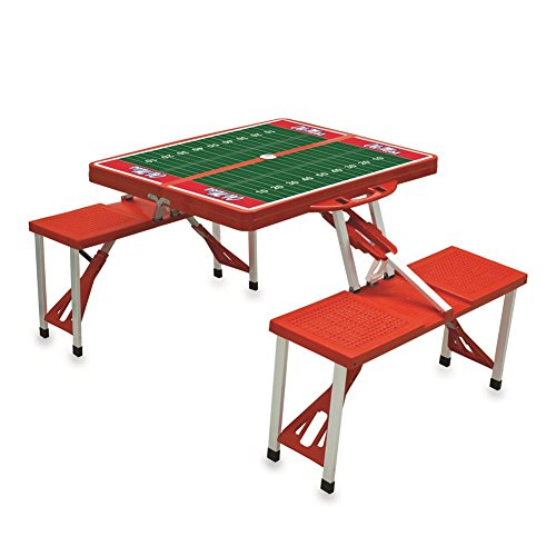 Studio : Picnic Time Publisher : Picnic Time Binding : Misc. Product Description Folding tailgate table with 4 built-in seats. Molded ABS plastic on an aluminum alloy frame. Licensed NCAA team logos and colors. Seats have a 250 lbs. capacity each. Dimensions: 33.5W x 4D x 15H inches. 0