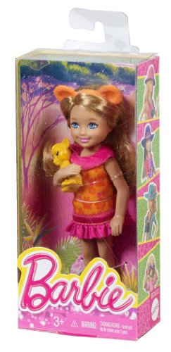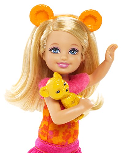 It's time to get wild! All dressed up for a safari, Chelsea doll has made a new baby animal friend. This adorable lion-themed explorer is outfitted in a purple and orange leopard print with pink ruffles at the neck and hem. Bright orange safari boots complete the look and let her venture anywhere in the jungle. She wears an adorable matching orange headband (designed to look like lioness ears), so she'll match her precious baby lion friend. Join her and discover what adventure and fun can be found in the wild! Includes Chelsea doll and animal. Ages 3 and older.Feature