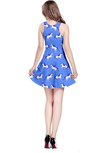 CowCow Womens Sky Blue Unicorn Seamless Sleeveless Skater Dress, Sky Blue - M