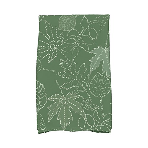 E by design KTFN746GR34 Dotted Leaves Floral Print Kitchen Towel, 16" x 25", Green