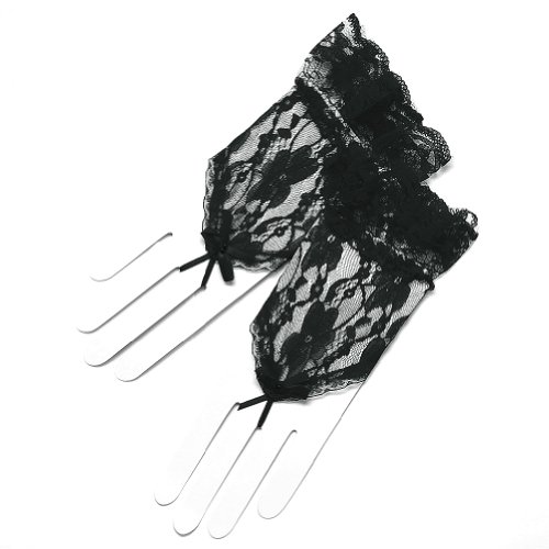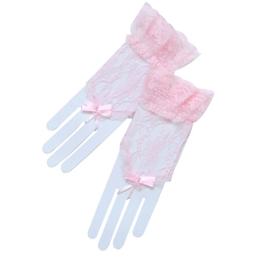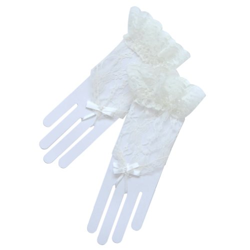Binding : Apparel Product Description Lovely LightWeight Wrist Length(2BL) flower pattern fingerless lace gloves with elastic ruffle trim. Gloves have a little stretch to them for a great fit. One size fits all. Approximately 6.5" long from bottom to fingertips with 2" ruffle. (When laying flat) LENGTH, TIGHT or LOOSE depends on your arm circumference. 0