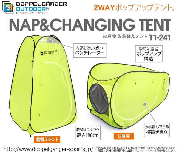 瞬時に設営ができ、190cmの高さがあるため、レジャーやスポーツ大会時などの着替えに便利です。