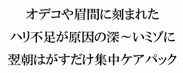 【使用方法】 洗顔後、お肌の水気を拭き取ります。 適量を手にとり、おでこの気になる部分にムラなく薄く塗ってください。 10~15分後に表面が乾いているのを確認し、ゆっくりとはがしてください。 使用後は化粧水など、普段のお手入れをしてください。 ※表面が乾いたら、そのままお休みいただくこともできます。