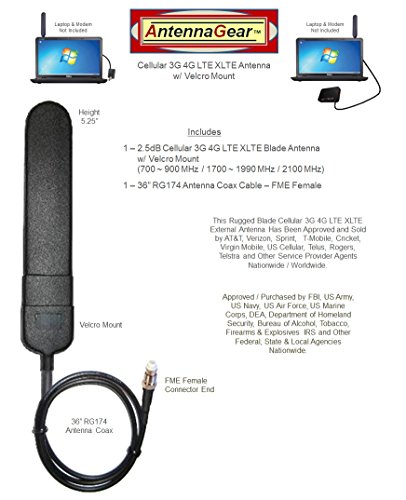 Dual MIMO World-Band BLADE External Antenna Signal Booster w/Mounting Velcro & OEM Adapter Cable. This Rugged Antenna Has Been Approved and Sold by Alltel, Verizon, T-Mobile, Cingular / AT&T, Sprint / Nextel, Telstra and Other Service Provider Agents Nationwide/Worldwide!! - Advanced Hi-Gain Multi-Band (3G 4G LTE AMPS HSDPA EDGE EVDO GPRS UMTS CDMA WCDMA TDMA GSM - Digital & Analog) Technology Delivers Maximum Reception - Up To 5 Times More Signal (3dBi - 5dBi System Gain) Than Your Wireless Equipment Used Inside Vehicles / Homes / Buildings Without External Antenna. - Omni-Directional / World-Band - Supports All Wireless Carriers Technologies & Frequencies: 3G 4G LTE GSM/UMTS/HSPA 750/850/900/1800/1900/2100 MHz, CDMA 800/1900 MHz and GPS 1575 MHz - For Nationwide/Worldwide Use!! - Hi-Density Polymer Construction (5.5"Tall x 1"Wide) Assures Superior Durability - Withstands Rigors of Every Day Use - For Inside Use Only. - Includes - 18" OEM Adapter Cable For NETGEAR. - Includes - Adjustable Mounting Velcro - Easy-On / Easy-Off Mounting!! - Nationwide / Worldwide Service - 2yr Warranty - Satisfaction Guaranteed!!Feature