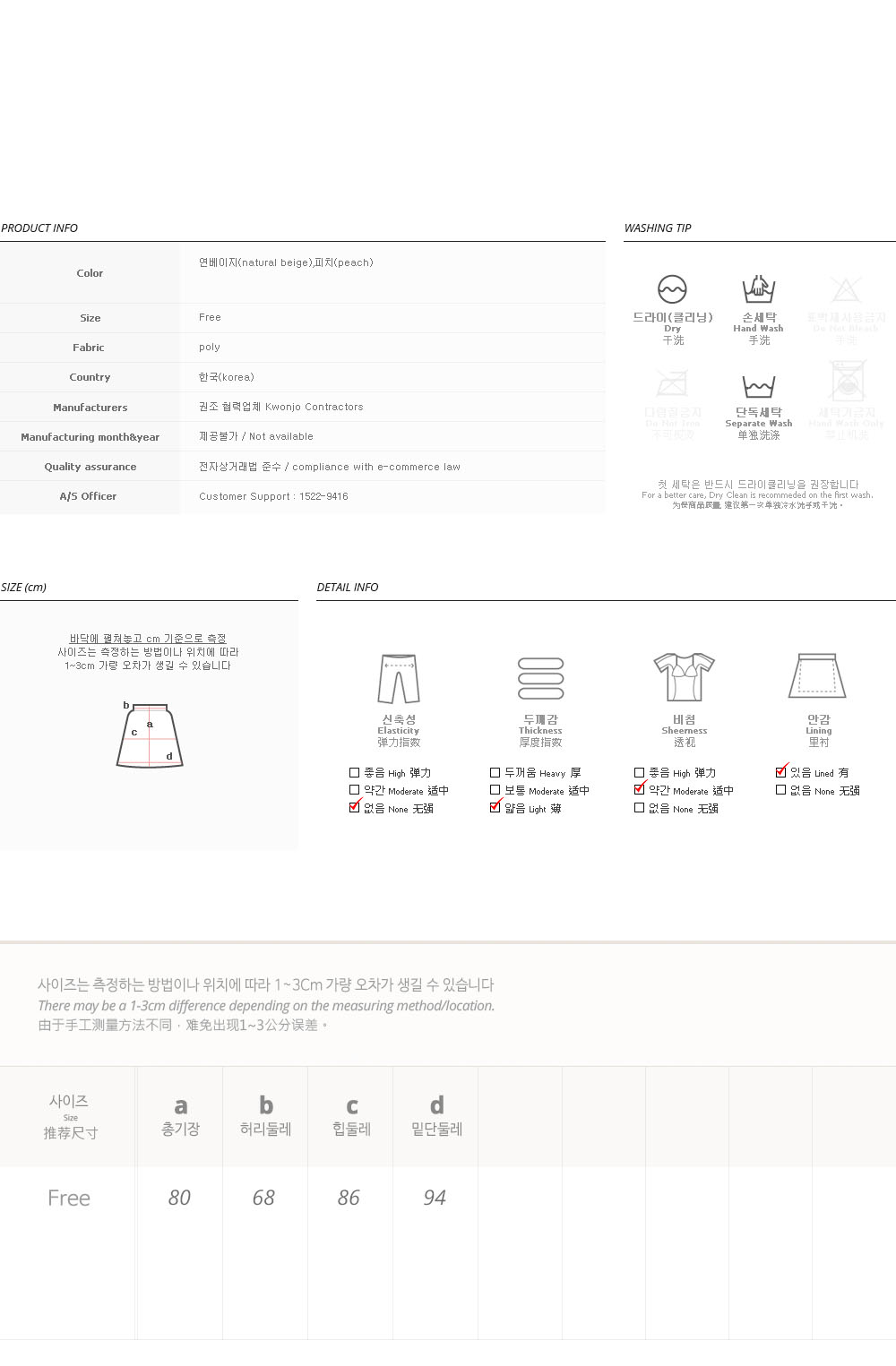 피팅 컬러와 사이즈는 연베이지, S 입니다