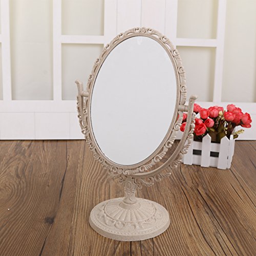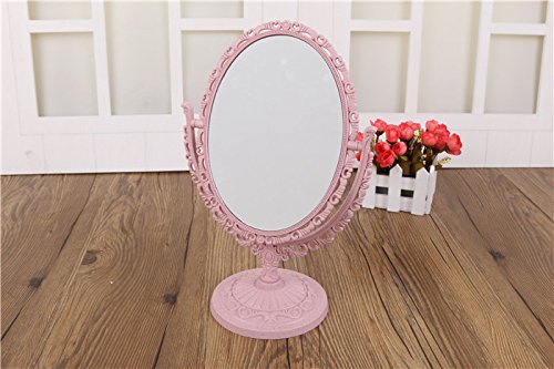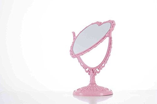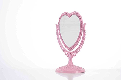 7-inch TabletopSwivel Vanity Makeup Mirror with 3x Magnification, Two SidedABS Decorative Framed European StyleMakeupMirror for Bathroom Bedroom Dressing Table- Oval (pink heart-shaped)