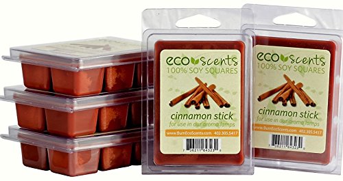 Studio : EcoScents Publisher : EcoScents Binding : Kitchen Product Description 100% All Natural Soy Fragrance Squares. Enjoy our unique fragrance named "Cinnamon Stick" - Well, I guess that says it all! Packed with Cinnamon this will certainly encompass your entire home or office! Each pack contains 6 cubes weighing a total of 3.0 ounces and emits fragrance for hundreds of blissful hours. Place one cube in your favorite aroma lamp and melt away! Soy wax burns cleaner and cooler. It's also easy to clean up with just soap and water. 0