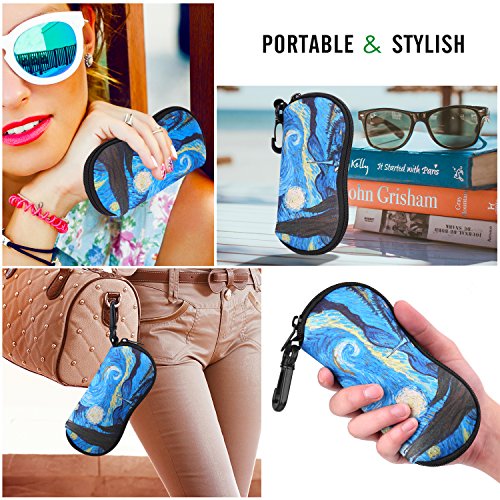 FLEXIBLE & LIGHTWEIGHT - Made of premium neoprene, fits most size glasses, ultra lighweight that adds minimum bulk and weight while on the go or carrying around.