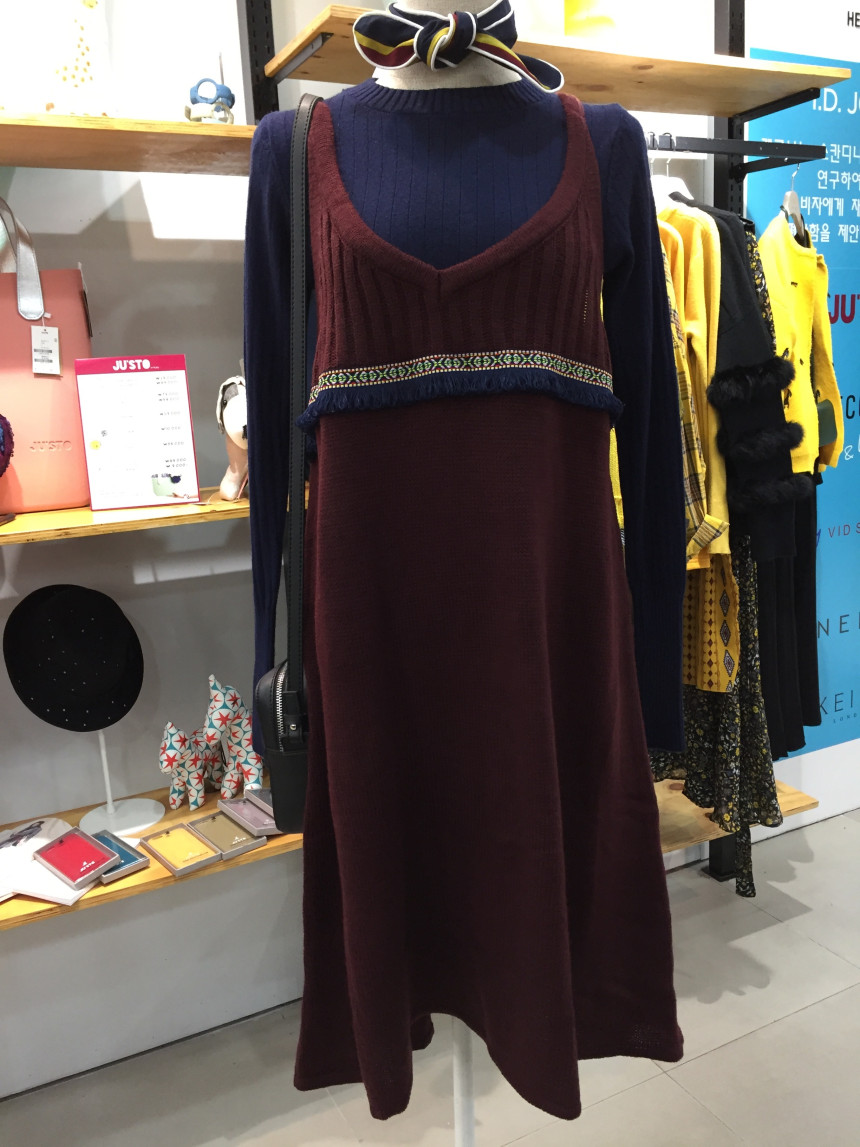 W몰 특가상품으로 입니다.레코브에 귀염귀염한 니트 끈 원피스입니다.신축성이 좋아서 편안하게 입기 좋은 아이템으로가슴라인 밑쪽으로 자수랑 수술포인트가 있어여성스러우면서도 고급스러운 느낌을 주는원피스랍니다.니트나 티셔츠 등에 레이어드해서 입기에 좋은 아이템으로 한겨울까지 코트등과 매칭해서연출하시면 멋스러운 분위기를 연출하실수 있답니다.가슴둘레 88~103cm 총장97cm