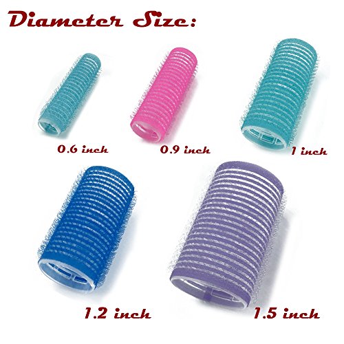 - There are five sizes for you to use,They are:0.6 inch,0.9 inch,1 inch,1.2 inch,1.5 inch,Self grip design requires no pins or clips,Strategically placed teeth help hair to dry and set fast.
