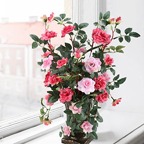 GTidea European Royal Style Design Artificial Potted Flowers Realistic Silk Rose Arrangements for House Office Restaurant Table Centerpieces Windowsill Decor