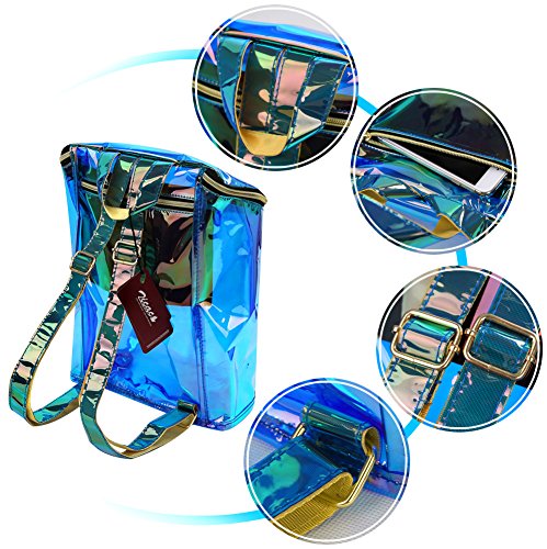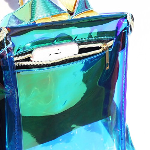 Zicac Clear Bag Transparent Hologram Holographic Envelope Backpack Silver Metallic