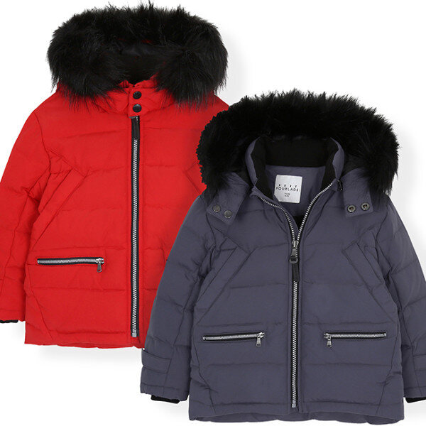 스포티한 컬러감과 세련된 느낌이 잘 어울리는 기장감이 참 좋은 다운점퍼에요. 소매 바람막이 시보리도 있어 작아도 추위에는 강한 아이템이랍니다.