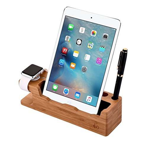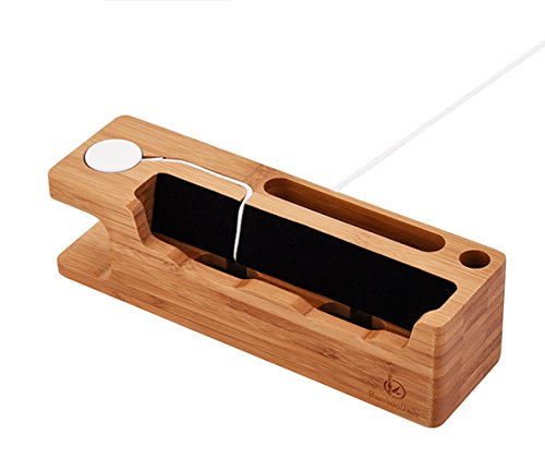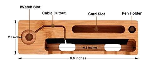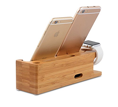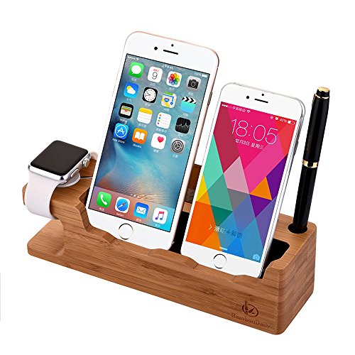Apple Watch Stand, Bamboodaily Bamboo Wood Dock: Cradle, Holder, Stand for All Android Smartphone, iPhone 6 6s 7 Plus 5 5s 5c Charging, Accessories Desk