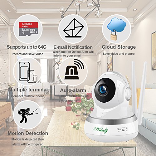 -. Title : Security Camera WIFI IP Camera Wireless Home Surveillance Camera WiFi Dog/Baby Monitor with Cloud Storage Live Steam Night Vision Pan/Tilt Two way Audio 1+3Meter Power Cable Extension Cable Nettoly
