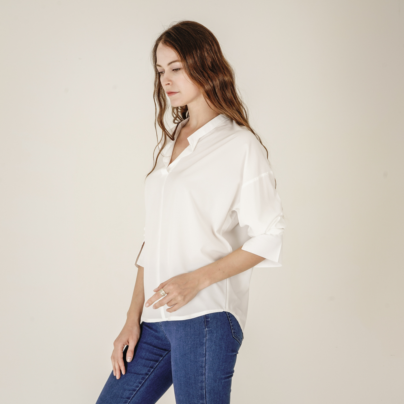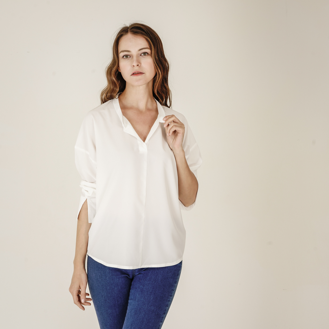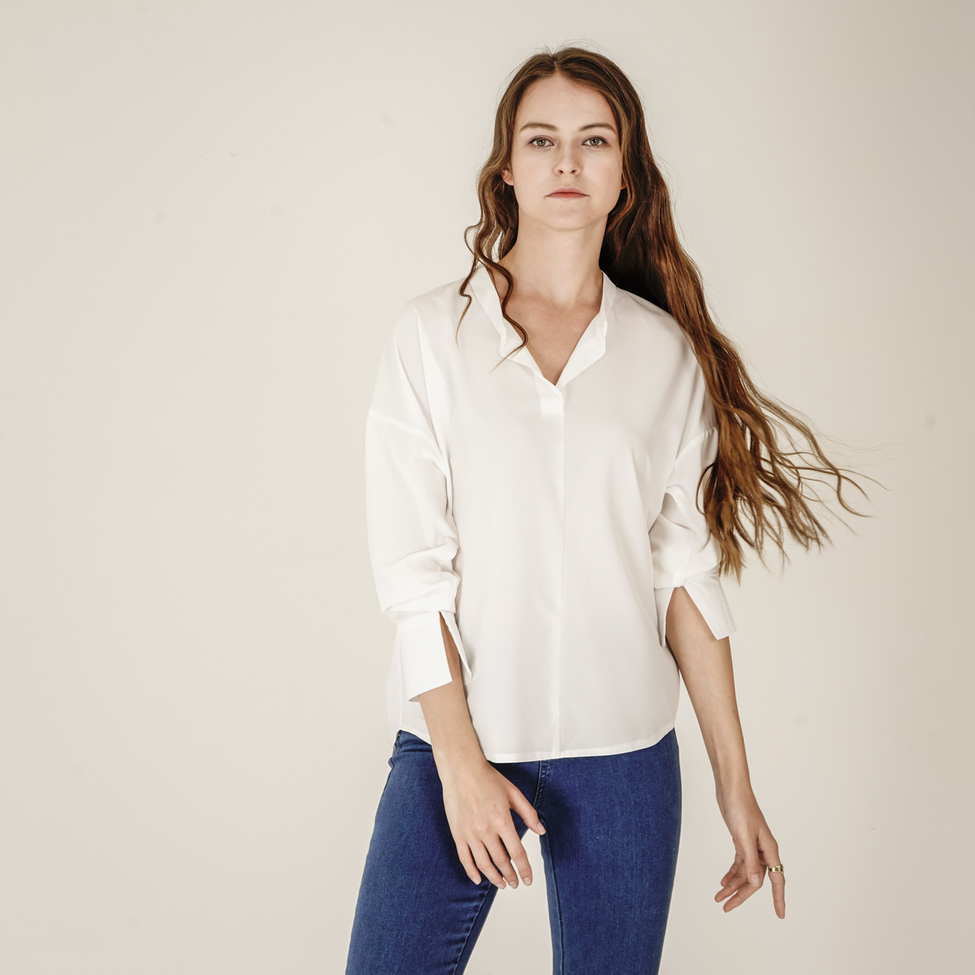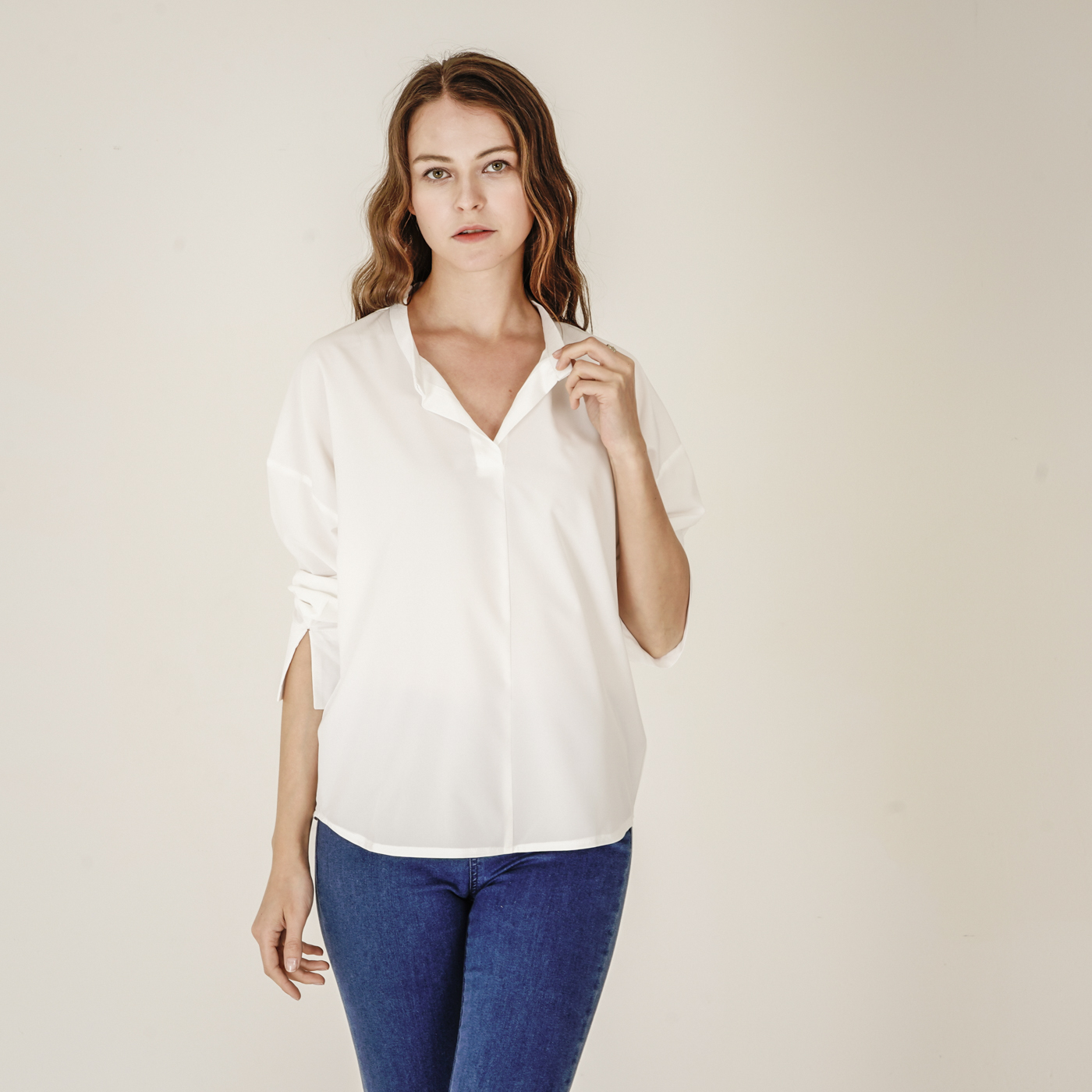 소매디테일이 시크한 화이트 셔츠입니다.
