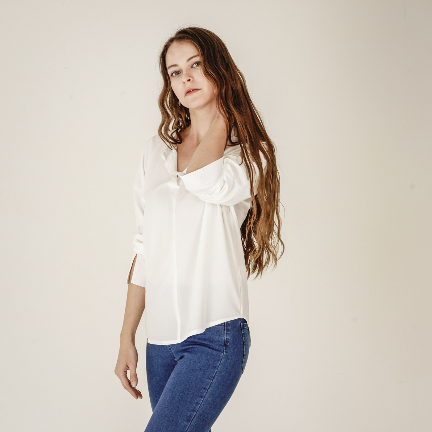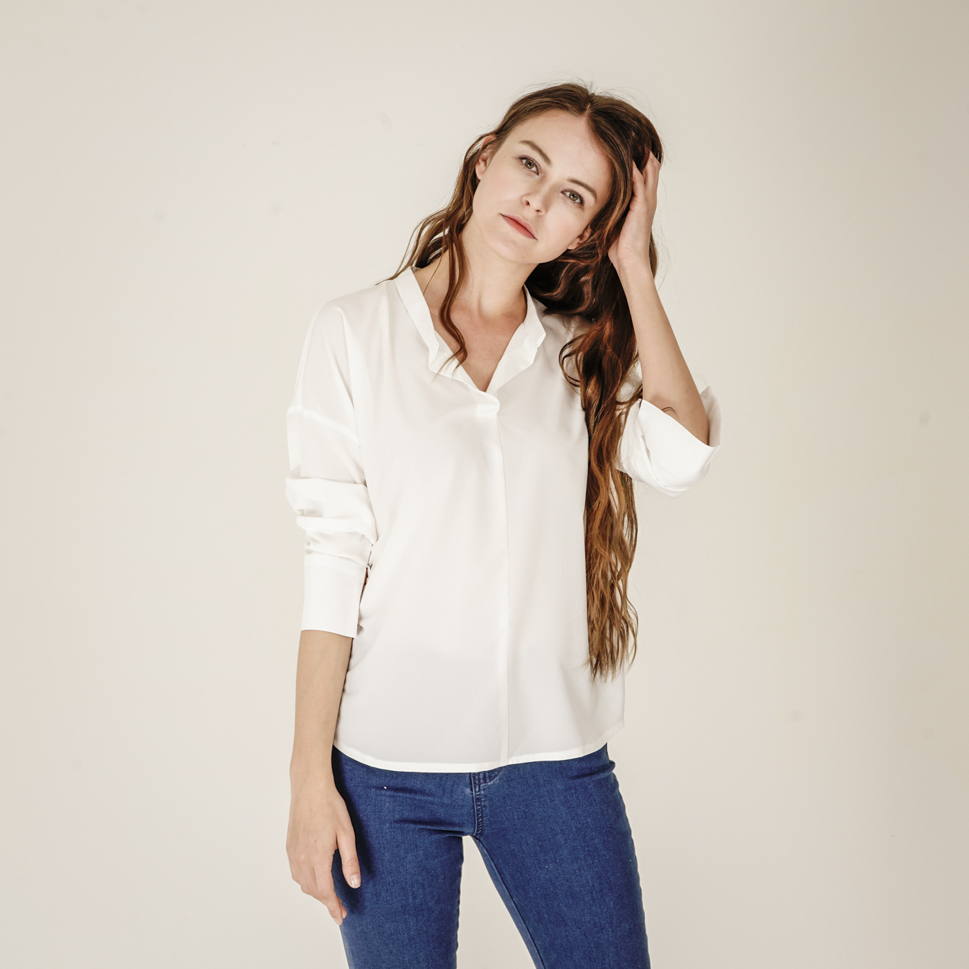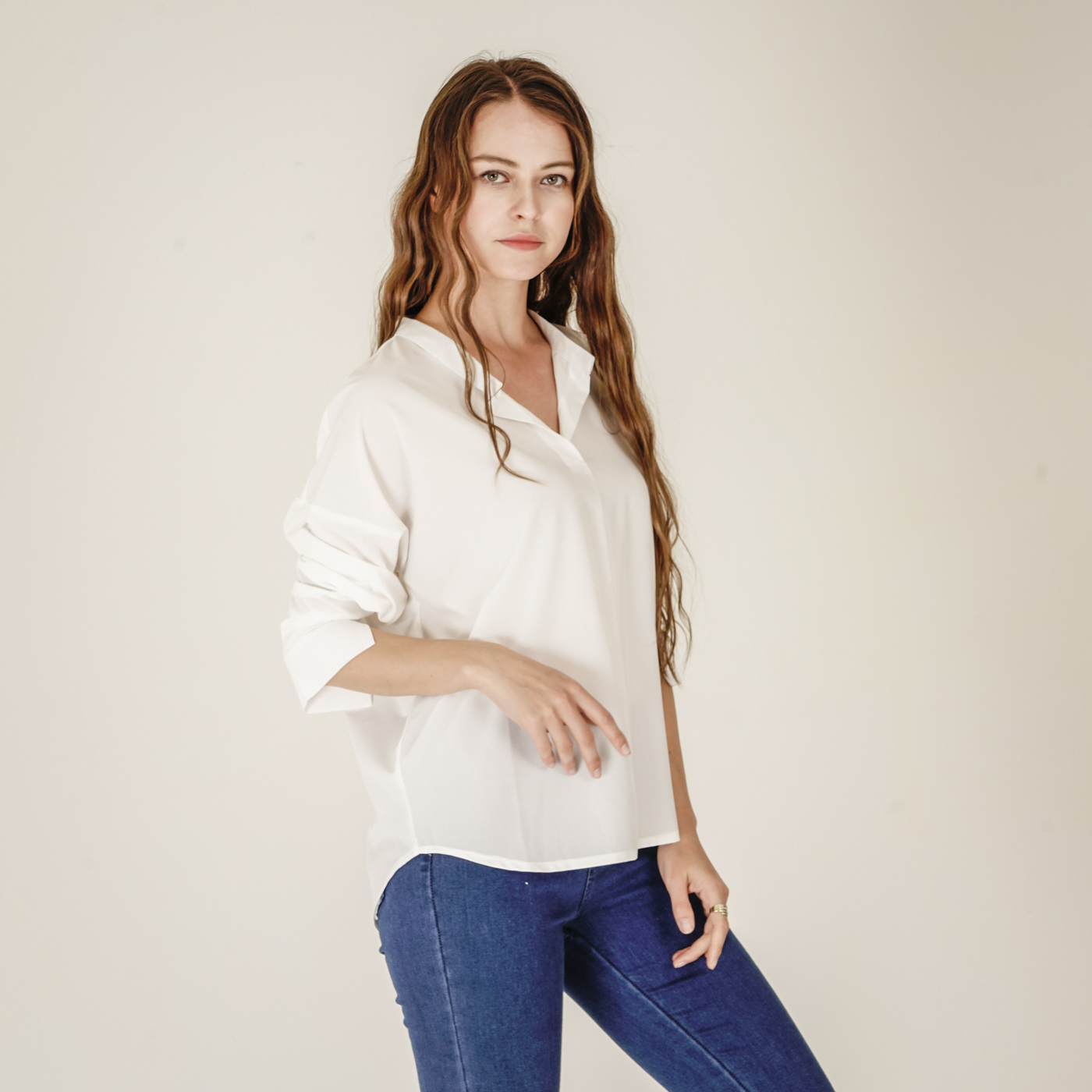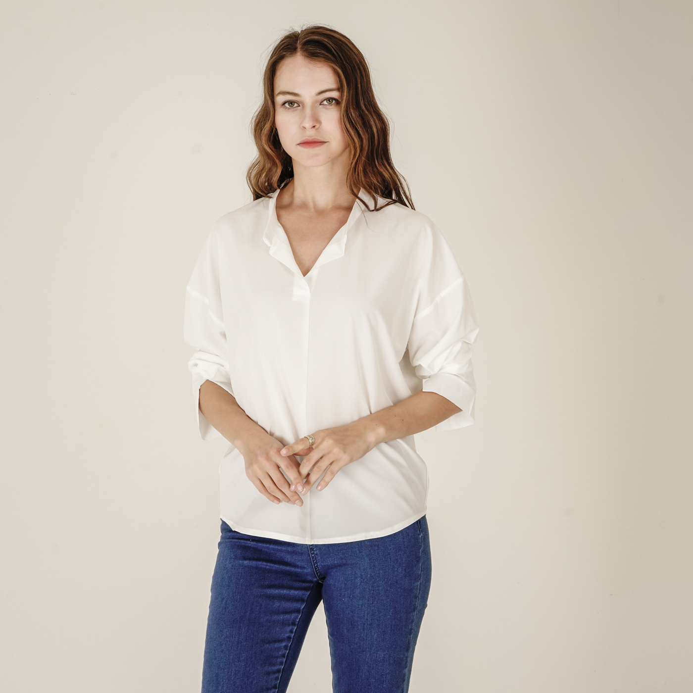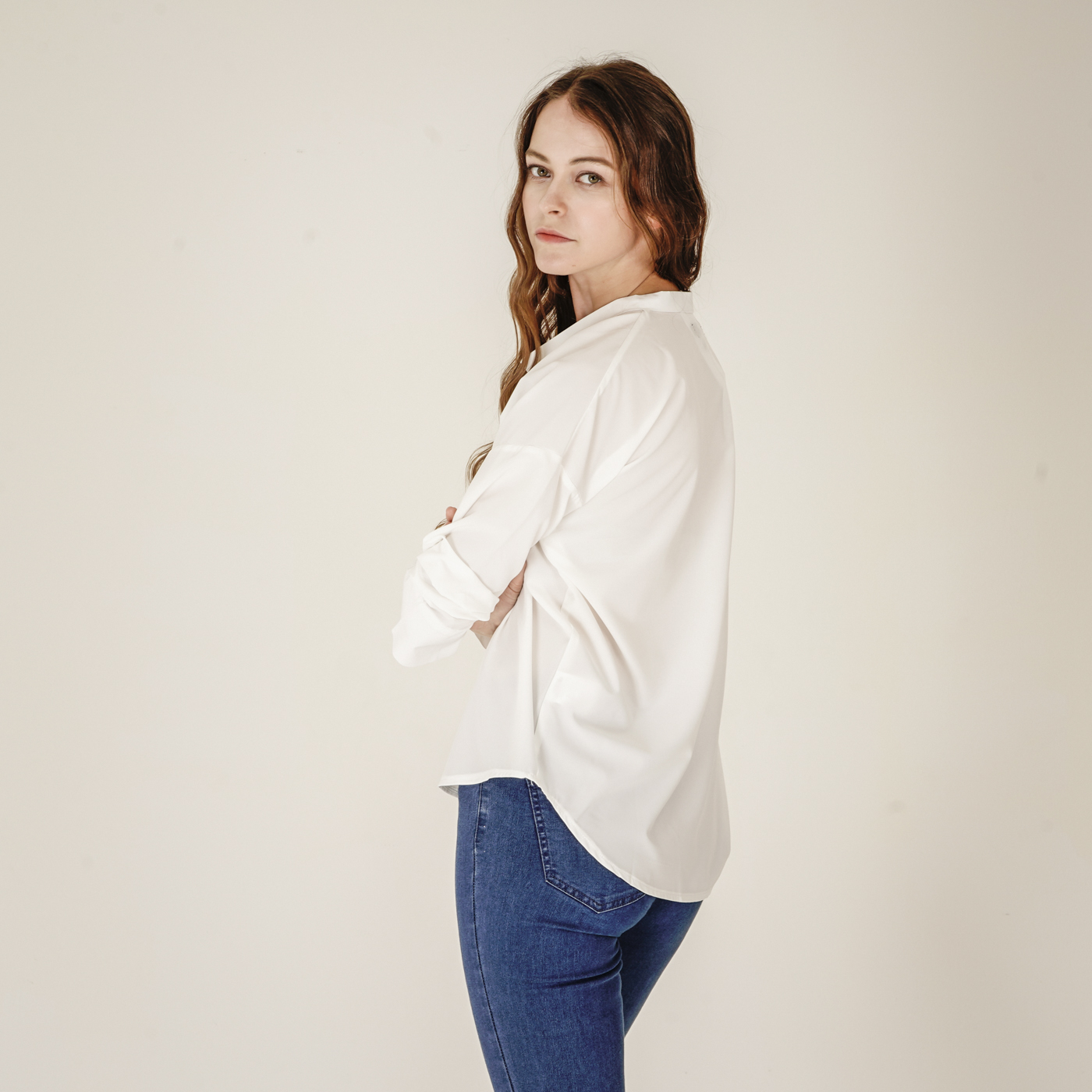 소매디테일이 시크한 화이트 셔츠입니다.
