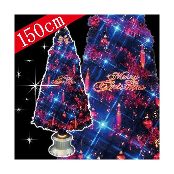 クリスマスツリー ブラックファイバーツリー150cmセット サイズ:直径70cm×高さ150cm 外箱 :23×34×123cm 梱包 :1個口 (セット明細)・150cmブラックファイバーツリー(1)・35cmMCプレート(1)・4インチ×2.7mドットレーザーモール(2)・3インチツインプレーンベル(1)・60mmウィンドウボール(6) 今男の子のお子様に大人気のブラックファイバーツリーの新作モデルです! !LEDは点滅、点灯のパターンをスイッチひとつでお選びいただけます。 既に売上本数を着々と伸ばしている当店自信ありのクリスマスツリーです。