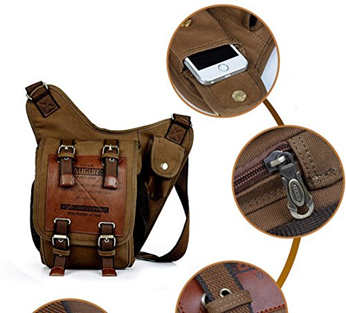 -. Brand : Augur -. Color : Brown -. Feature : shoulder bag -. IsAutographed : 0 -. IsMemorabilia : 0 -. PackageQuantity : 1 -. ProductGroup : Sports -. ProductTypeName : OUTDOOR_RECREATION_PRODUCT -. Title : Augur Men Boys Canvas Bag Rtero Bag Single Shoulder Messenger Casual Bag Coffee
