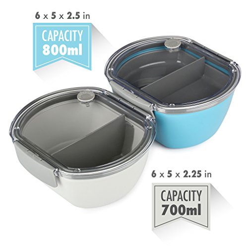 Zell Set of Two Lunch Boxes with Compartments & Snap Lock Lids | Removable Tray Dividers | BPA Free, Reusable Food Storage Containers | For Kids & Adults | Blue: 6 x 5 x 2.5 in | Gray: 6 x 5 x 2.5 in