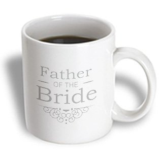 -. Brand : 3dRose -. Feature : White ceramic mug with blue interior and handle / Image printed on both sides / Available in 11oz only / Microwave safe, hand-wash to preserve image / High gloss finish -. Label : 3dRose LLC -. Manufacturer : 3dRose LLC -. ProductGroup : Kitchen -. ProductTypeName : KITCHEN -. Publisher : 3dRose LLC -. Studio : 3dRose LLC -. Title : InspirationzStore Occasions - Father of the Bride in silver - Wedding - part of matching marriage party set - grey gray swirls - Mugs