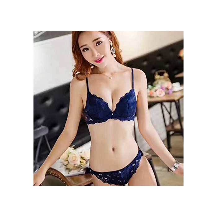 Smile lala 【Smile LaLa】 레이디스 브래지어 쇼츠 속옷 상하 2점 세트 란제리 섹시 레이스 여성 어른 깨끗함 귀여운 (B75,네이비)
