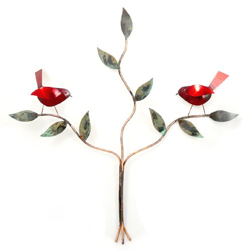 -. Binding : Kitchen -. Brand : Modern Artisans -. Color : Red -. Feature : Handmade entirely of copper in the USA / 2 lively birds perched in a tree are provided with vivid transparent red color that blends beautifully with the torch finish and patina of the copper leaves / Glossy UV-resistant coating protects the copper patina, allowing the sculpture to adorn your indoor or outdoor space / Measures approx. 18" wide x 19" tall -. IsAutographed : 0 -. Label : Modern Artisans -. Manufacturer : Modern Artisans -. Model : WD0290 -. PackageQuantity : 1 -. ProductGroup : Home -. ProductTypeName : HOME -. Publisher : Modern Artisans -. Studio : Modern Artisans -. Title : Red Birds in a Tree American-Made Copper Wall Art Sculpture for Indoor or Outdoor, 18"